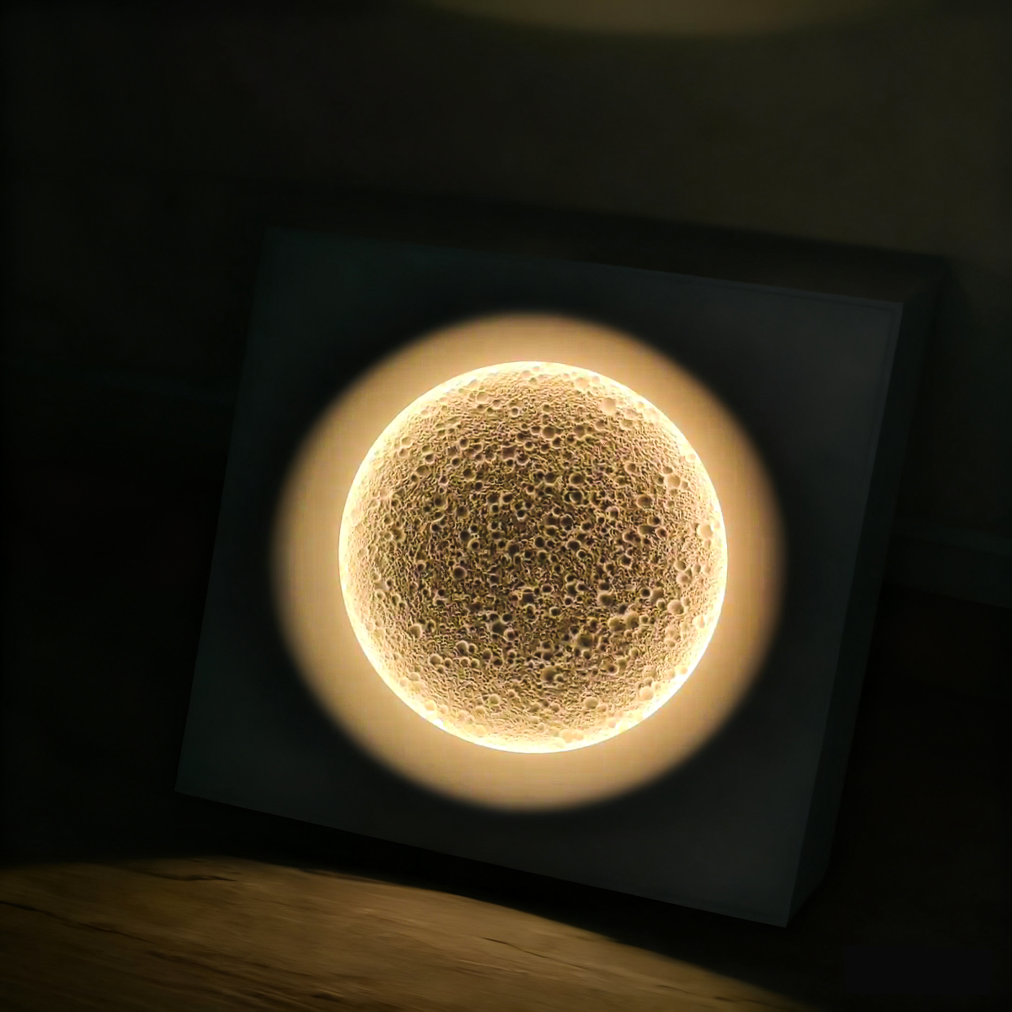 Utilizing the characteristics of concrete/gypusm material to highly replicate the meteorite craters on the moon's surface, while adding light to enhance the three-dimensional sense of the plane.