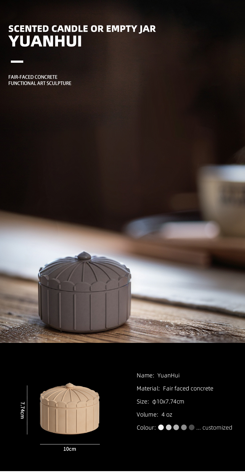 1. Jar Material: Fair-faced concrete, water-milled surface, smooth and delicate.